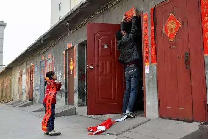别旧年,盼新年,家家户户挂春联。